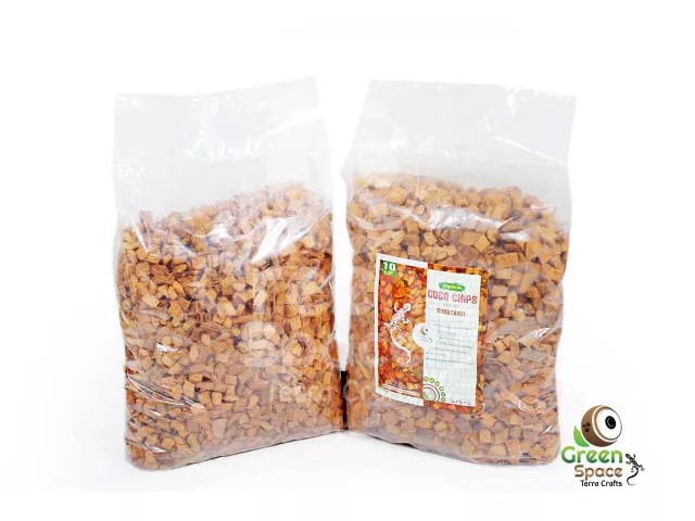 Characteristics of Coco husk chips are also like Coco peat as below and provide a better environment for the creatures in terrariums.