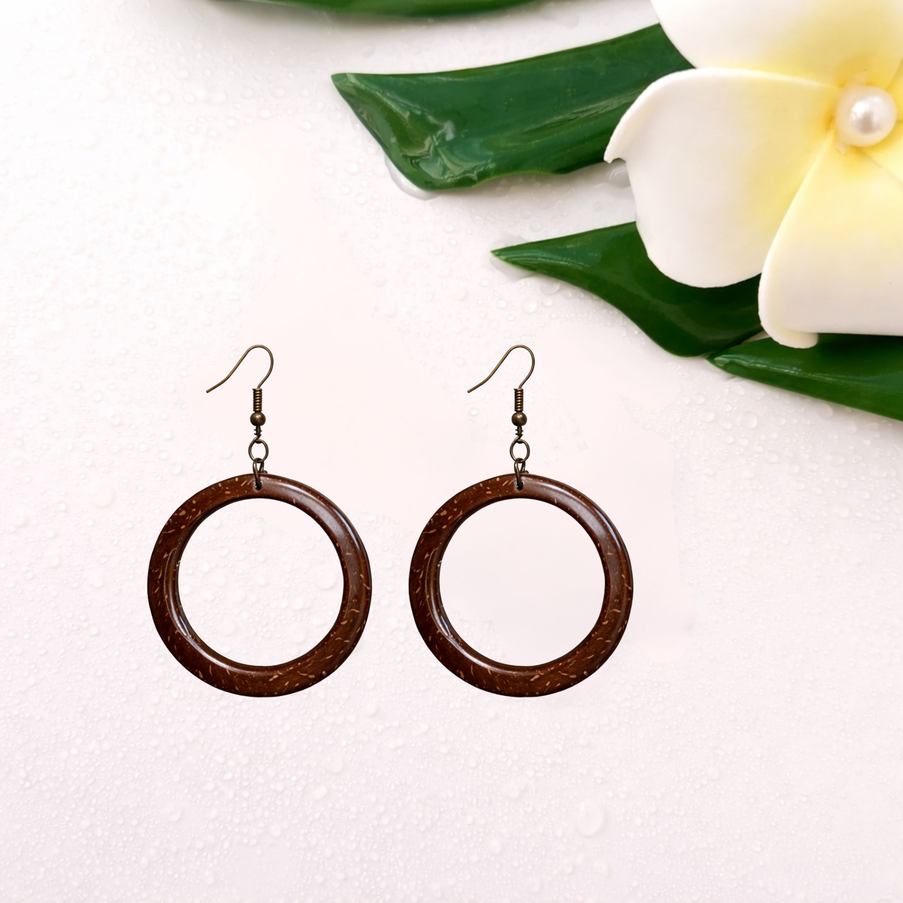Made from upcycled coconut shell, a renewable and biodegradable material, these earrings help reduce environmental waste while promoting eco-conscious living. The natural grain patterns of coconut shell ensure every pair is unique.