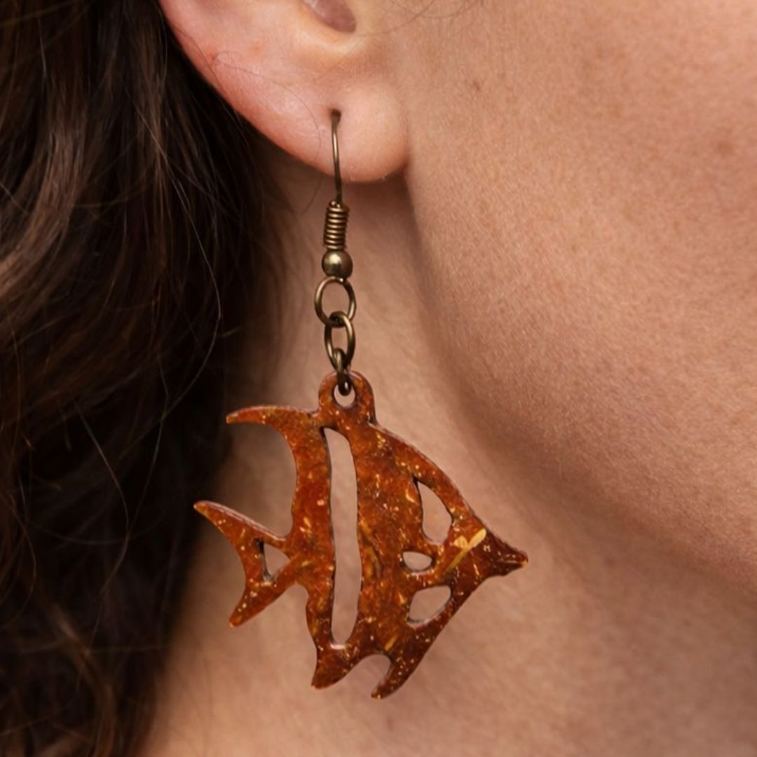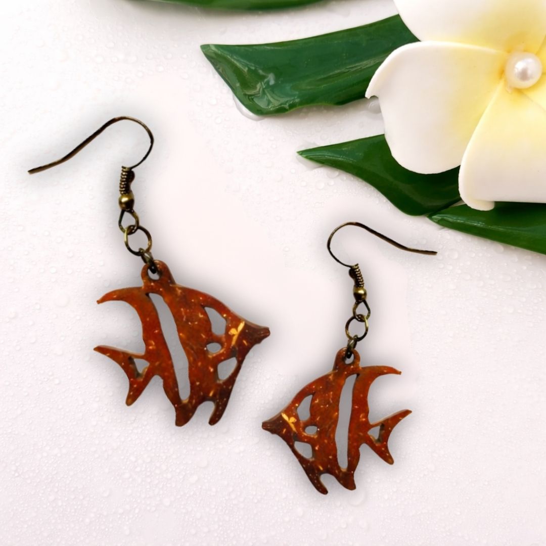 Coconut shell Fish Earrings Coconut shell Fish Earrings