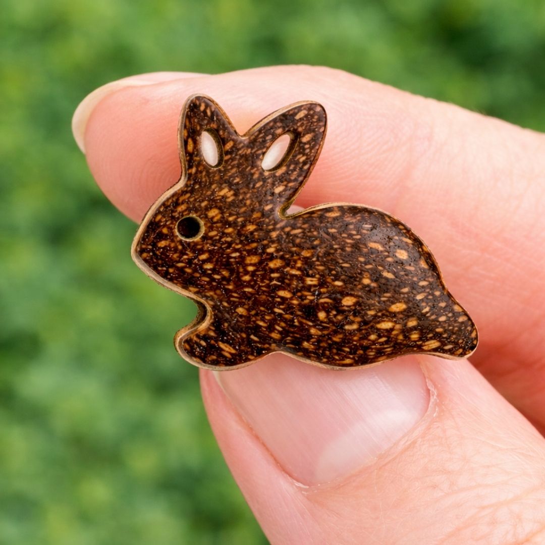 The Coconut Shell Rabbit Shape Earrings are handcrafted from 100% natural coconut shell, offering a lightweight, eco-friendly, and playful accessory. Perfect for sustainable fashion lovers who appreciate nature-inspired designs.