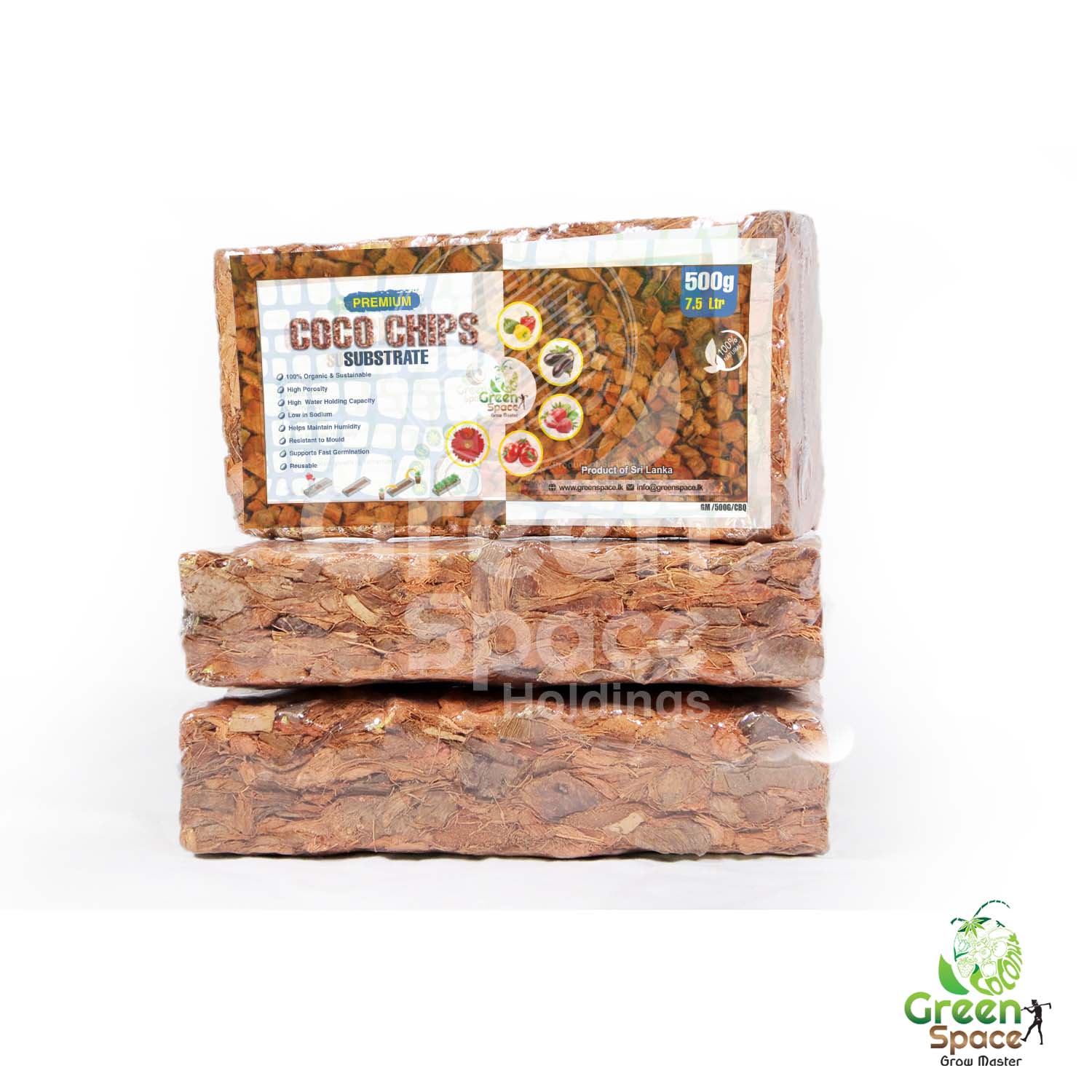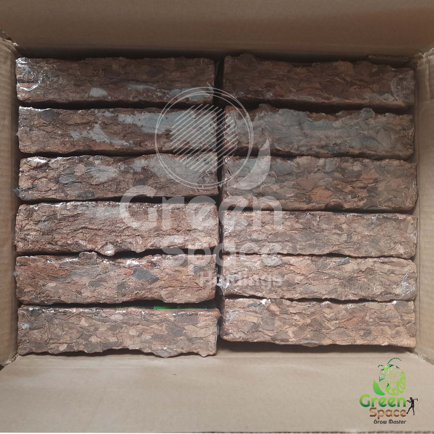 Green Space Natural Garden Supplies 500g Coco 2s Husk Chips (12-18 Mm) Bricks Shrink-Wrapped With A Label, 24 Pieces Packed In A Master Carton, Palletized.