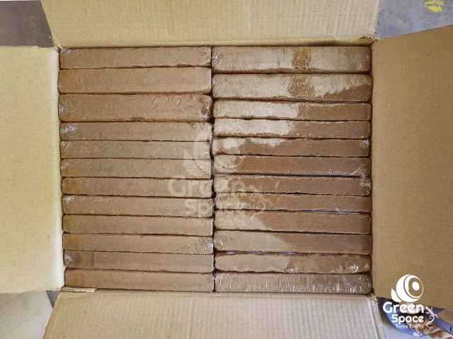 TR 325G COCO FIBRE BRICK SHRINK WRAPPED WITH A LABEL, 48 PIECES PACKED IN A MASTER CARTON, PALLETIZED