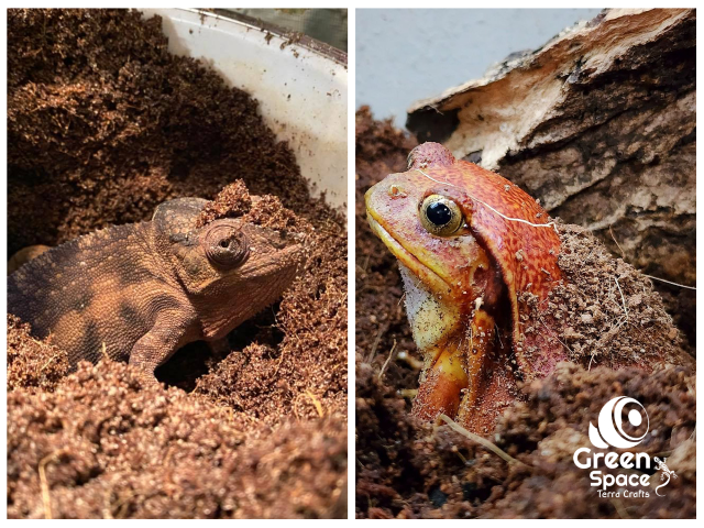 These characteristics create a friendly atmosphere for amphibians like toads, frogs, salamanders and also for reptiles like lizards, geckos, ball pythons. Already added substrate layer can be used for quite a period (03 months) as it lasts longer, maintaining the cleanliness by absorbing the dirt. When it’s due to remove the layer of waste coco peat, it can be used as compost for plants.
